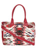 This jacquard handbag has one adjustable sling strap and two handles made with leatherette. It has one main zip compartment and also has one zip pocket & two patch pockets inside along with one patch pocket & one zip pocket at the side and one zip pocket at the back.