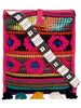 Jacquard sling bag. One long sling strap. One main compartment with wooden bead closure. It has 2 patch pockets and 1 zip pocket inside. Decorated with multicoloured tassels.