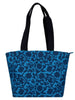 This canvas shopping bag has a double handle. It has one main compartment with zip closure. It has 1 inner pocket and 1 mobile pouch.