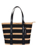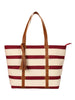 This canvas tote bag with two handles made with leatherette has one main zip compartment and also has one zip pocket and two patch pockets inside. Decorated with a tassel.