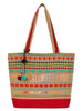 Jacquard shoulder bag with two handles made with cotton. has one main zip compartment. has one zip pocket and one patch pocket inside. decorated with pompom.