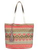 This jacquard & cotton shoulder bag has two handles made with leatherette. It also has one main zip compartment and one zip pocket and two patch pockets inside. It is decorated with a tassel.