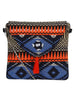 This jacquard sling bag with one removable metal chain has one main zip closure compartment with a flap and also has one zip pocket inside and is decorated with a tassel.