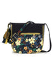 Trendy new Sling Bag from the Rangoli collection. Crafted in Polycotton Canvas fabric, this bag features a Floral Digital Pattern with a matching tassel. The bag has adjustable sling strap and 1 main compartment secured with a zip closure. It has 2 External zip pockets at frount and back, along with 1 inner pocket inside.