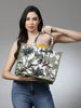 Merge utility and style with this impressively spacious handheld bag from Our latest Jungle Collection. Crafted in Jacquard Cotton Canvas fabric, this bag features an Animal & Floral Self Design. It has an adjustable and detachable sling strap as well as two convenient short grab handles for great comfort. The bag has one main compartment secured with a zip closure and includes 1 zip pocket and 1 mobile pocket inside.