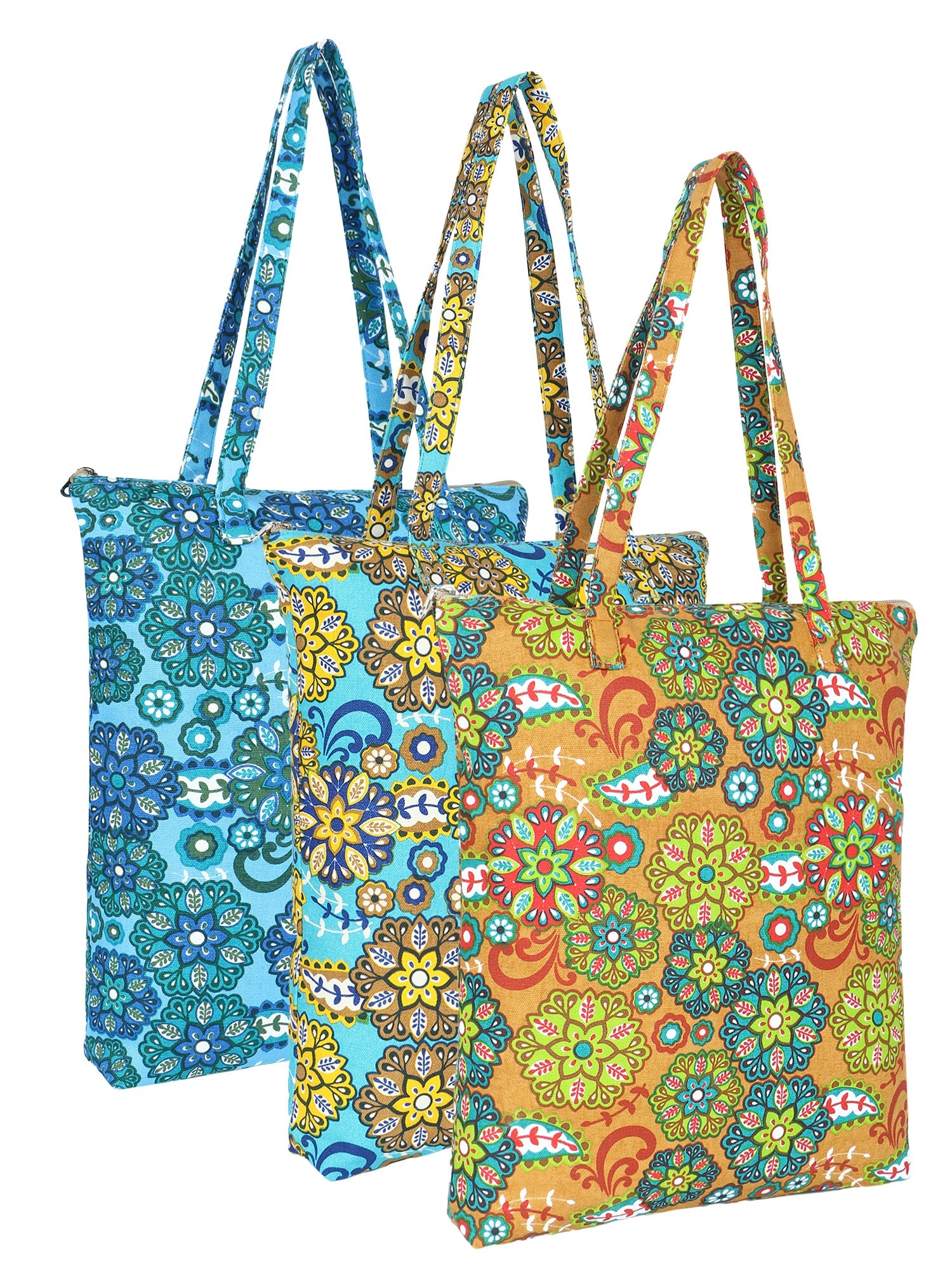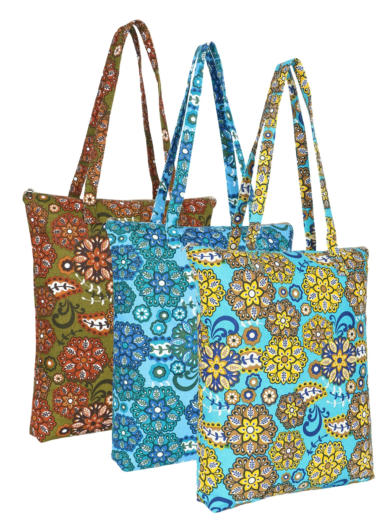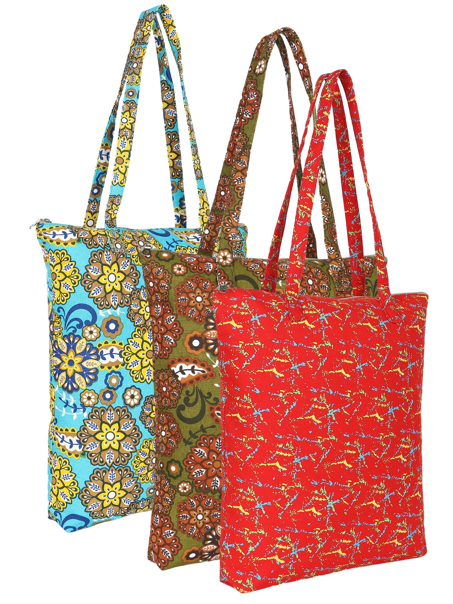 Pack of Three Multicolor Shopping Bags from Eco-Friendly Collection. Crafted with Cotton Canvas fabric, these Shoulder Bags feature a Floral Printed Pattern. The Bags have 1 main compartment secured with a Zip closure and include 1 Inner Zip Pocket. The Two Handles make it convenient to carry the Bag around all day. Dimensions (LxHxW) : 38 x 42 x 5 cm. Say no to plastic bags and opt for these eco-friendly, reusable alternatives. Durable, stylish, and environmentally conscious, these bags help reduce waste while offering convenience for your everyday needs.