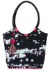 Canvas handbag from anekaant. it has one main compartment and two leatherette handles. it also has one zip pocket and two patch pockets inside, one zip pocket at the back and is decorated with a tassel.