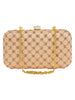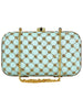Hand crafted designer box clutch with geometric sequins & zari embroidery work. It has one main compartment with clasp closure and a detachable metal chain. Can also be used as a sling.