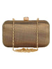 Hand crafted designer box clutch with stripes. It has one main compartment with clasp closure and a detachable metal chain. Can also be used as a sling.