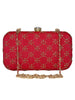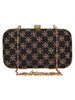 This hand-crafted faux silk box clutch with sequines embroidered work has one main compartment with clasp closure and a detachable metal chain. Can also be used as a sling bag.