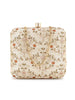 Steal the spotlight with this Box Clutch from the Vista collection. It features an Ogee Embroidered pattern on Faux Silk fabric. Has a Detachable Shoulder strap secured with a Click closure.