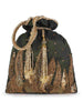 Step out donning this stunning Potli from latest Dangle Collection. This Potli comes with a spacious main compartment secured with a Drawstring closure. It features a Botanical Embellished Pattern on Polycotton fabric and comes with a Detachable Wrist loop decorated with Tassels.