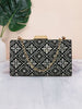 Be the cynosure of all eyes by carrying this Geometric Embroidered Box Clutch from our latest Hue Collection. This Velvet Clutch features one main compartment with a click closure. It comes with a sturdy Detachable Shoulder strap assured to hold your belongings safe. Style it with any ethnic or party outfit to complete the look.