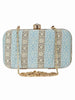 Hand crafted designer box printed clutch. It has one main compartment with clasp closure and a detachable metal chain. Can also be used as a sling.