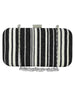 Hand crafted designer box striped clutch. It has one main compartment with clasp closure and a detachable metal chain. Can also be used as a sling.