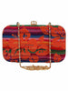 Hand crafted designer box printed clutch. It has one main compartment with clasp closure and a detachable metal chain. Can also be used as a sling.
