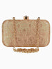 Hand crafted designer box printed clutch. It has one main compartment with clasp closure and a detachable metal chain. Can also be used as a sling.