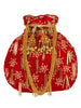 This hand-crafted designer potli with heavy embellished work has one main compartment with drawstring closure and a detachable metal chain. Pair it up with a dress or ethnic wear and rock the evening.