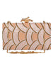 This stylish faux silk clutch with sequines and moti embellished work will add grace to your evening look. It has one main compartment with clasp closure and a detachable metal chain. Can also be used as a sling bag.