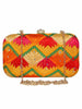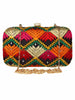 This hand-crafted phulkari embroidered box clutch is a perfect match for your ethnic collection. It has one main compartment with clasp closure and a detachable metal chain. Can also be used as a sling bag.