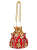 This hand-crafted designer potli with embellished work has one main compartment with drawstring closure and a detachable pearl handle. Pair it up with a dress or ethnic wear and rock the evening.