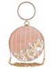 This hand-crafted faux silk embroidered round bracelet clutch with floral embellished work has one main compartment with clasp closure. It has a wrist loop ring as well as a detachable metal chain. Can be used both as a hand purse or a sling bag.