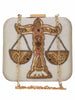 Anekaant faux silk square box clutch with embellished work inspired from the Libra sunsign has one main compartment. It has a clasp closure and a detachable metal chain. Can also be used as a sling bag.