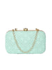 Anekaant hand-crafted ogee embroidered box clutch. Has one main compartment with clasp closure. It has a detachable metal chain. Can also be used as a sling bag.