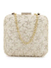 An irresistible disty embellished clutch from Anekaant's Vista collection that will go well with your personality. This faux silk clutch adds glamour to your evening look and makes you stand-out in the crowd. The sturdy box clutch and detatchable chain will make sure you are never worried of it breaking apart. Secured with a click closure, you will find this clutch quite spacious to hold a phone, makeup, keys and a small pouch.