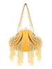 An irresistible striped embellished clutch from Anekaant's Pochette collection that will go well with your personality. This faux silk clutch adds glamour to your evening look and makes you stand-out in the crowd. The sturdy half moon clutch and detatchable wrist strap will make sure you are never worried of it breaking apart. Secured with a click closure, you will find this clutch quite spacious to hold a phone, makeup, keys and a small pouch.