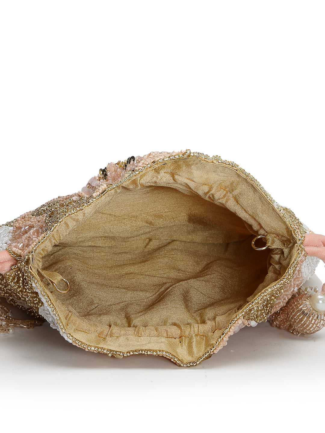 Embellished Potli from Anekaant's Dangle collection. This Potli is crafted with the best Faux Silk fabric and features a Diamond Embellished pattern decorated with Tassels. The sturdy and detachable Wrist loop will make sure you are never worried of it breaking apart. Secured with a Drawstring closure, you will find this Potli quite spacious to hold a phone, makeup, keys and other essentials. Dimensions (LxHxW): 22 x 21 x 4 cm