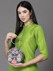 Clutch from Gala Collection. Crafted with Velvet fabric, this Clutch features a Quirky Embroidered Pattern. It has 1 main compartment secured with a Kiss closure. The Wrist loop as well as Detachable Shoulder strap make it convenient to carry around everywhere. Dimensions (LxHxW) : 20 x 20 x 6 cm