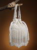 Potli from Droop Collection. This Potli is crafted with the finest Velvet Fabric and features a Hand Crafted Pearl Embellished Pattern decorated with Tassels. Has a Sturdy Beaded Wrist loop. Has one Main Compartment secured with a Drawstring Closure. Offers ample space for all your essentials like a phone, makeup, keys etc. Dimensions (LxHxW): 20 x 21 x 4 cm