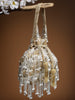 Potli from Droop Collection. This Potli is crafted with the finest Suede Fabric and features a Hand Crafted Palmette Embellished Pattern decorated with Tassels. Has a Sturdy Embroidered Wrist loop. Has one Main Compartment secured with a Drawstring Closure. Offers ample space for all your essentials like a phone, makeup, keys etc. Dimensions (LxHxW): 20 x 21 x 3 cm