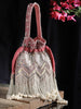 Potli from Droop collection. This Embellished Potli is crafted with the best Velvet fabric and features a Chevron Embellished pattern decorated with Tassels. The sturdy wrist loop will make sure you are never worried about it breaking apart. Secured with a drawstring closure, you will find this Potli quite spacious to hold a phone, makeup, keys, and other essentials. Dimensions (LxHxW): 20 x 29 x 4 cm