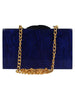 Hand crafted designer box clutch. It has one main compartment with clasp closure and a detachable metal chain. Can also be used as a sling bag.
