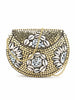 An irresistible metal and shell work colorblocked clutch from Anekaant's Mosaic collection that will go well with your personality. This clutch adds glamour to your evening look and makes you stand-out in the crowd. The sturdy half moon clutch and chain will make sure you are never worried of it breaking apart. Secured with a click closure, you will find this clutch quite spacious to hold a phone, makeup, keys and a small pouch.