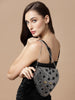 Clutch from Mosaic collection. This Box Clutch is crafted with the best Metal fabric and features a Mosaic Embellished pattern decorated with Stones. The sturdy and Detachable Shoulder strap will make sure you are never worried of it breaking apart. Secured with a Click closure, you will find this Clutch quite spacious to hold a phone, makeup, keys and other essentials. Dimensions (LxHxW): 17 x 20 x 3.5 cm