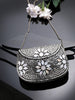 Silver & Pearl Clutch from Anekaant's Mosaic Collection. This Halfmoon Clutch is crafted with the finest Metal Fabric and features a Mosaic Embellished Pattern. Has a Sturdy and Detachable Chain Shoulder strap. Has one Main Compartment secured with a Click Closure. Offers ample space for all your essentials like makeup, keys etc. Dimensions (LxHxW): 19 x 13 x 3.5 cm