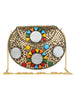 Stylish Hand-crafted Mosaic metal stone box clutch. It has one main compartment with flap closure and a detachable metal chain. Best fit for party as well as casual collection. Can also be used as a sling bag.
