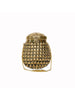 This designer mosaic metal clutch with metal work has one main compartment with buckle closure and a detachable metal chain. Can also be used as a sling bag.