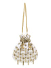 This Potli Clutch from Anekaant features a Embellished pattern on a Velvet fabric. It has a Drawstring closure and a detachable chain strap. Features a matching Tassels for a distinct look.