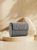 Add elegance & finesse to your look with this Foldover clutch from the Coffer collection. It features an Striped Embellished pattern on Faux Silk fabric. Has a Detachable Shoulder strap secured with a Click closure.