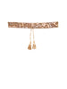 Glam up any outfit with abstract sequined belt. We have used the best cotton to craft this beautiful piece of art. With a knot closure and comfy fabric, this belt can be easily fitted around your waist.