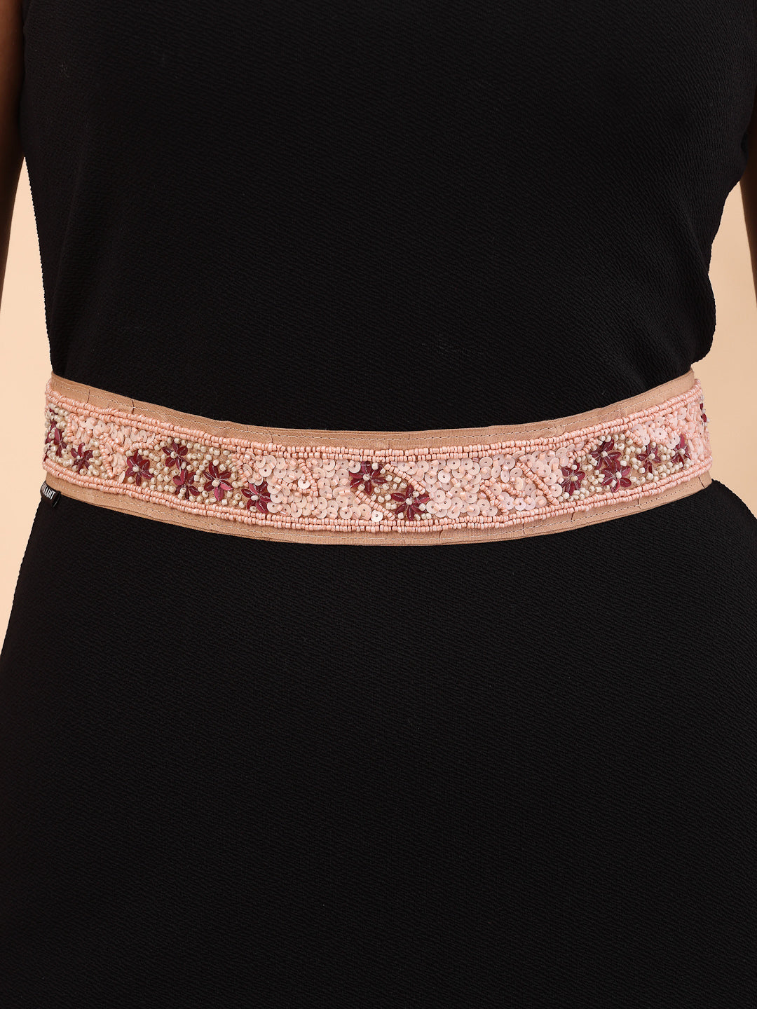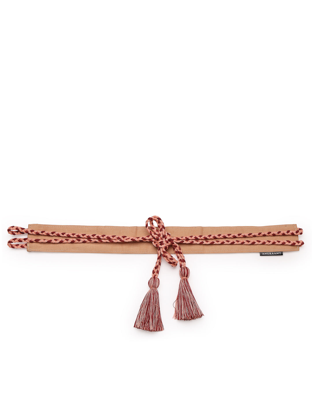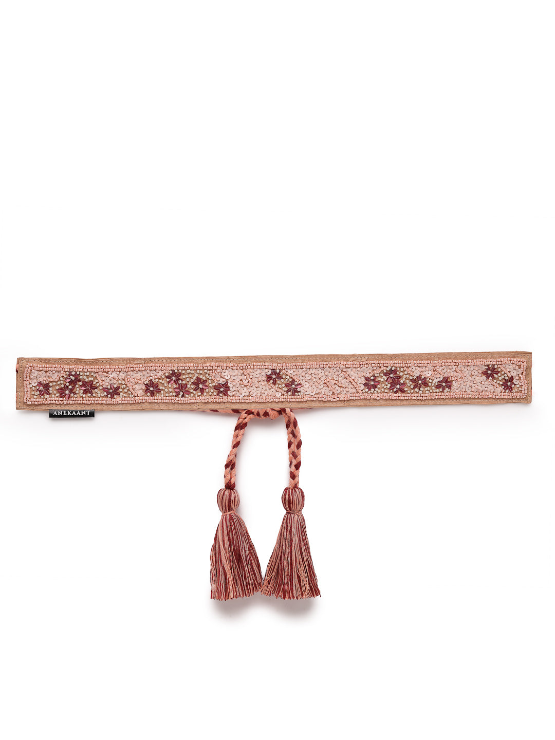 Handmade Belt from Lush collection. Crafted with durable Poplin Cotton fabric, this belt features a Floral Sequinned pattern decorated with Tassels. It can be fitted securely around any waist size by just tying a knot. Pair this belt with any ethnic or western attire of your choice.